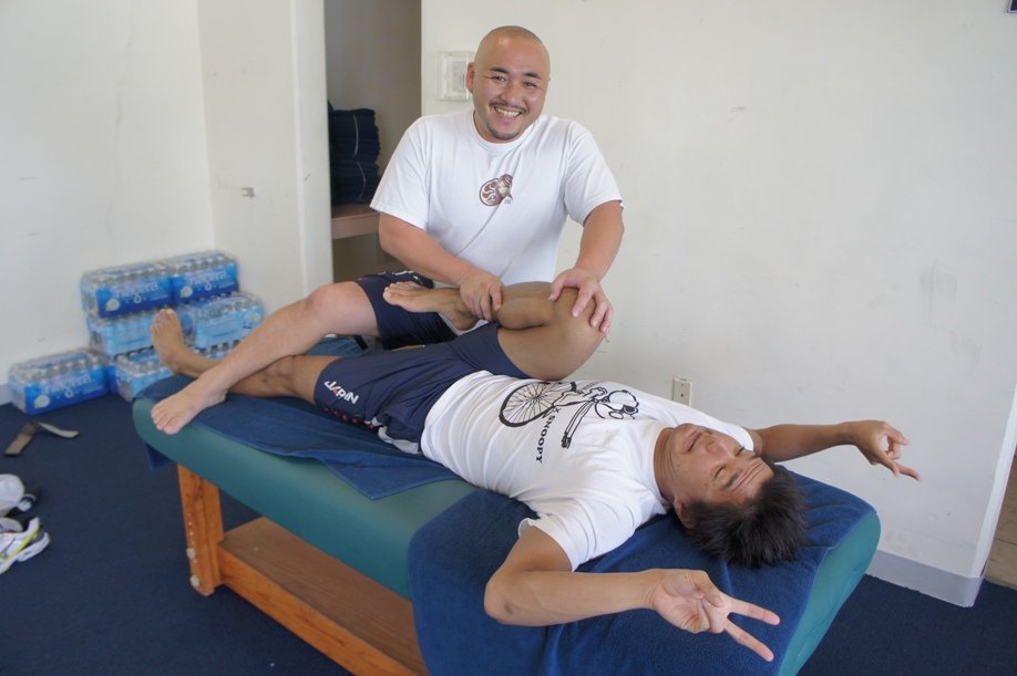 こちらはハードなトレーニングを終えてダウン中の小堀選手(能美SC)と堀畑選手(日本体育大学)。明日もしっかり頑張ります!