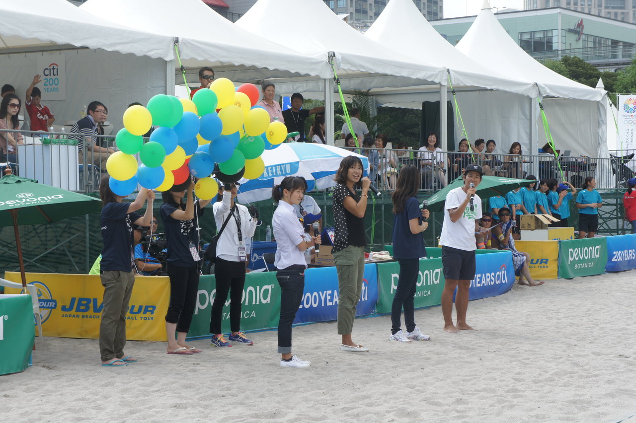 同時開催されたビーチバレー会場でもロンドン五輪メダリストの寺川綾選手、加藤ゆか選手、上田春佳選手がゲスト出演。2020年東京オリンピック招致へのPRをしてくれました。