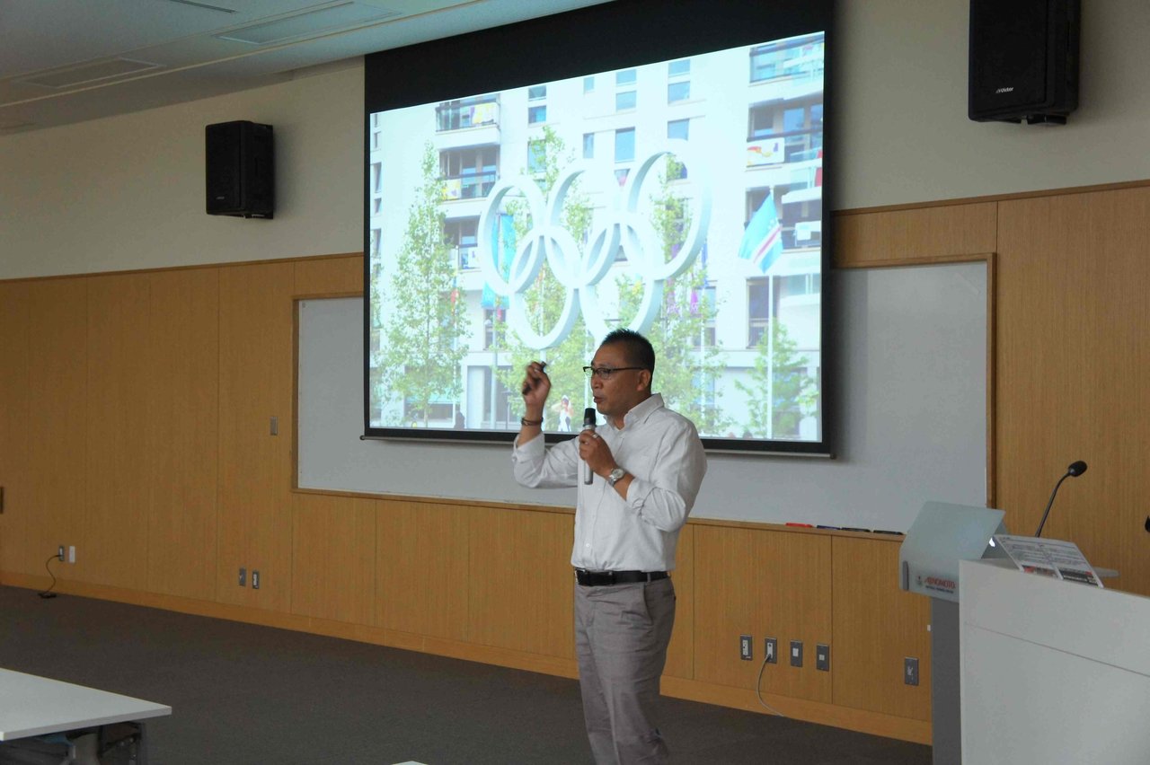 午前中は個人の部が行われ、ロンドン五輪代表の2名が貫禄の勝利。インタビューを受ける平井康翔選手。