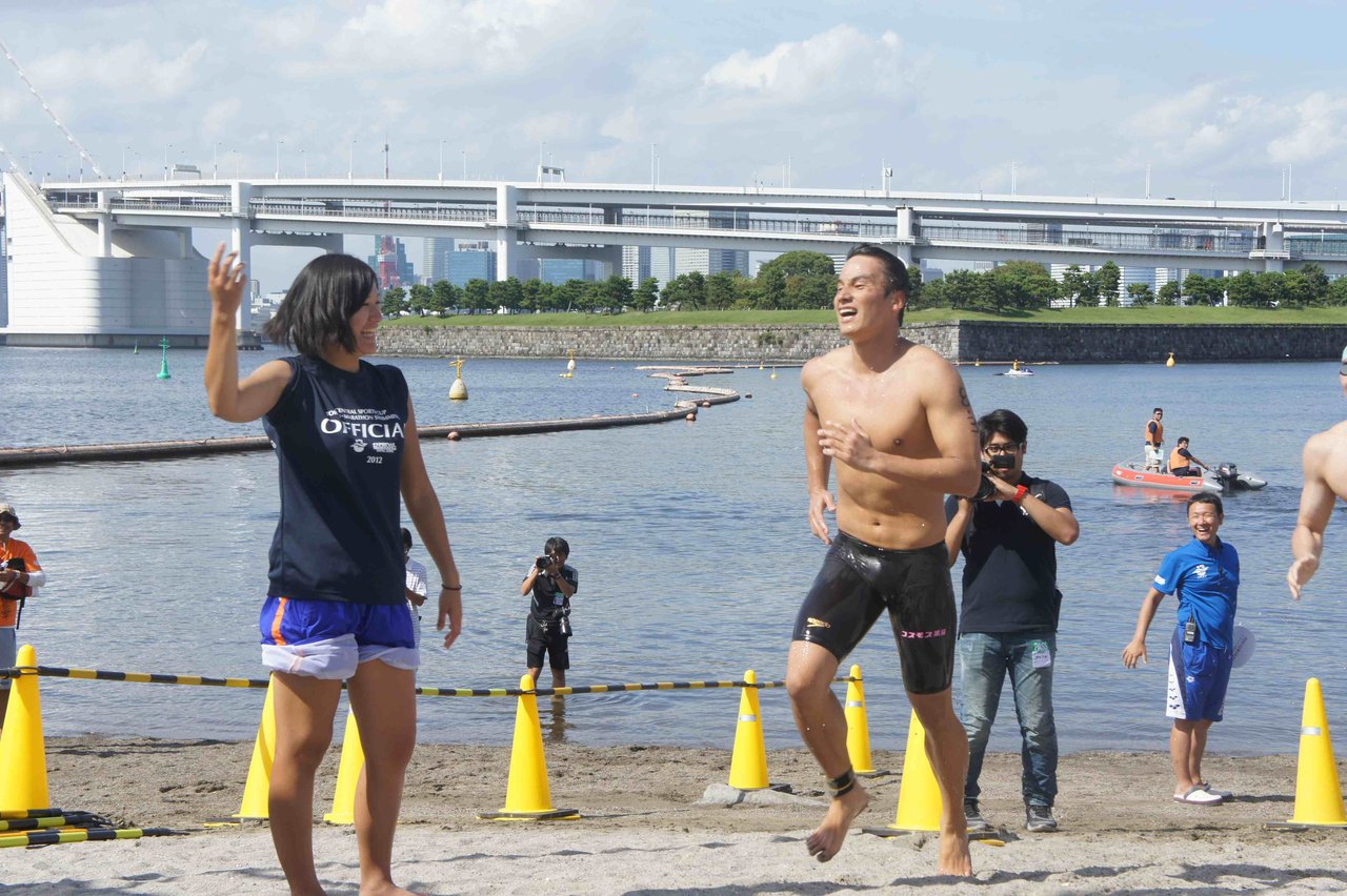 実はOWS初参戦の松田丈志選手。かなりしんどそうでしたが、最後まで全力疾走してくれました。
