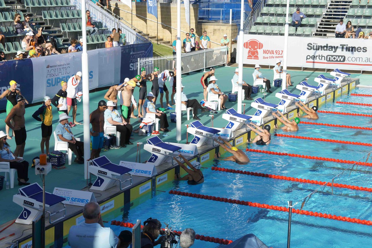 オーストラリア、中国、南アフリカ、ブラジル、日本の5ヶ国がチームとして戦います。ルールは個人種目各種目に1国2名ずつエントリーし、10名でレースが行われます。各種目、1位12点、2位10点、3位9点、4位7点、5位6点、6位5点、7位4点、8位3点、9位2点、10位1点を得点。リレー種目は単純に1位〜5位の得点が加算されます。800m自由形は男女1名ずつのエントリーで合計タイムの速い順で1位〜5位の得点が加算され、最終的に獲得点数でチーム順位が付くという競技ルールです。