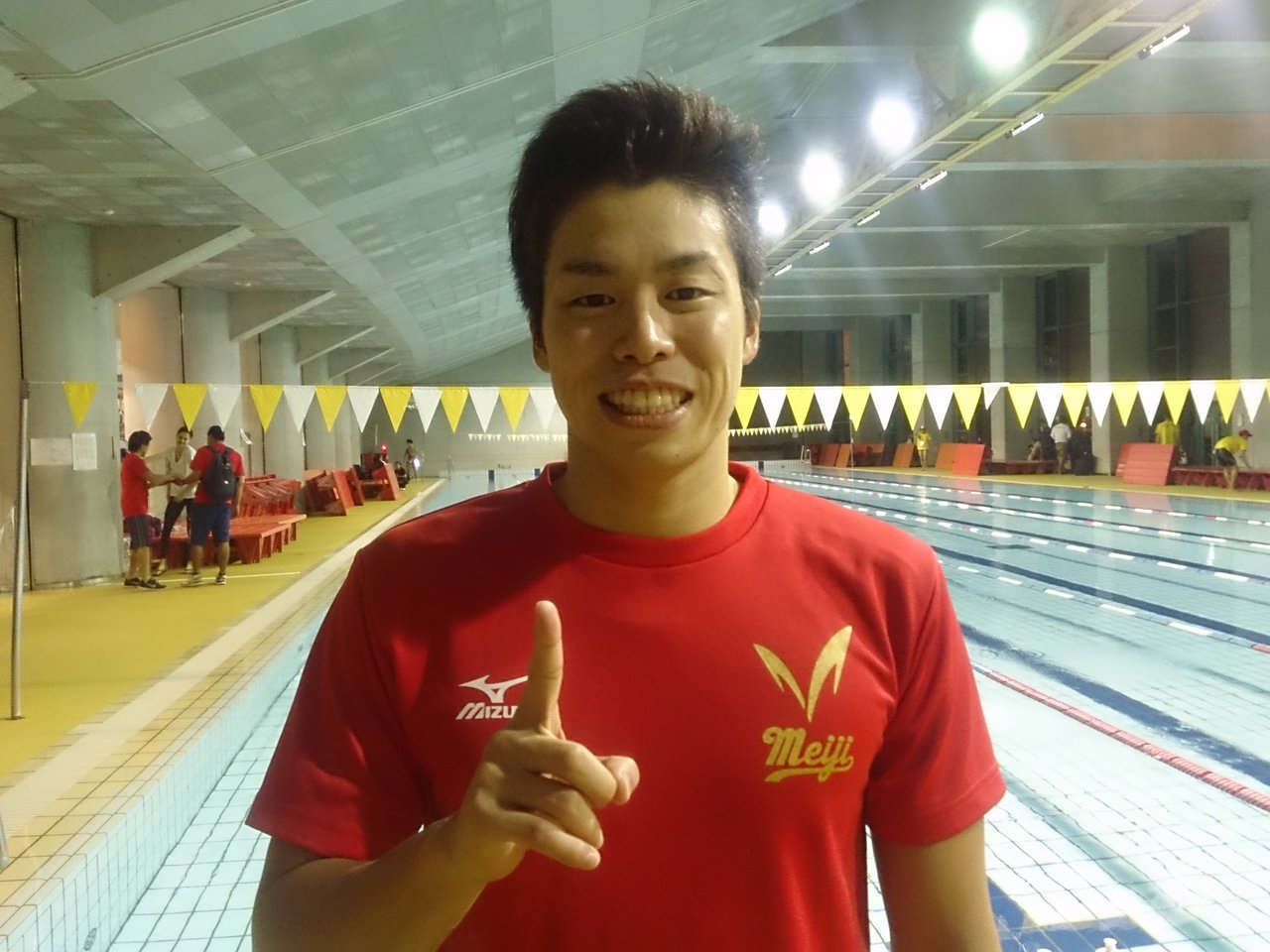 日本人のみでの決勝でラストは大接戦となった男子1500m自由形は、平井彬嗣選手(明治大学)が竹田渉瑚選手(イトマン)から0秒37差で逃げ切る15分16秒39で優勝。