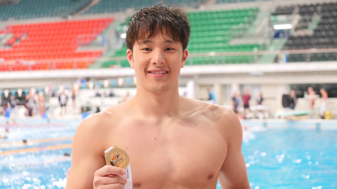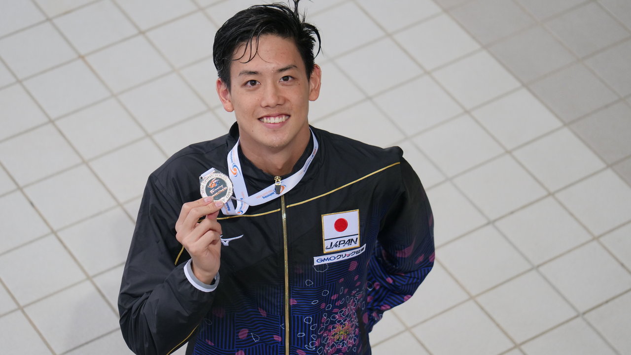 男子50m平泳ぎでは、小関也朱篤選手が27秒47のトップで予選を通過。2位通過だったのは、27秒54の高校新記録を樹立した近江ハリー選手(大町SS)です。