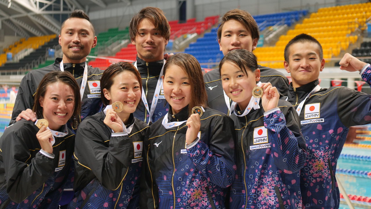 女子400m個人メドレーは大橋悠依選手が余裕を持った泳ぎで4分42秒30の予選1位で決勝へ。大橋選手に、清水咲子選手(ミキハウス)、高橋美帆選手(ミキハウス)の実力者ふたりが続いています。