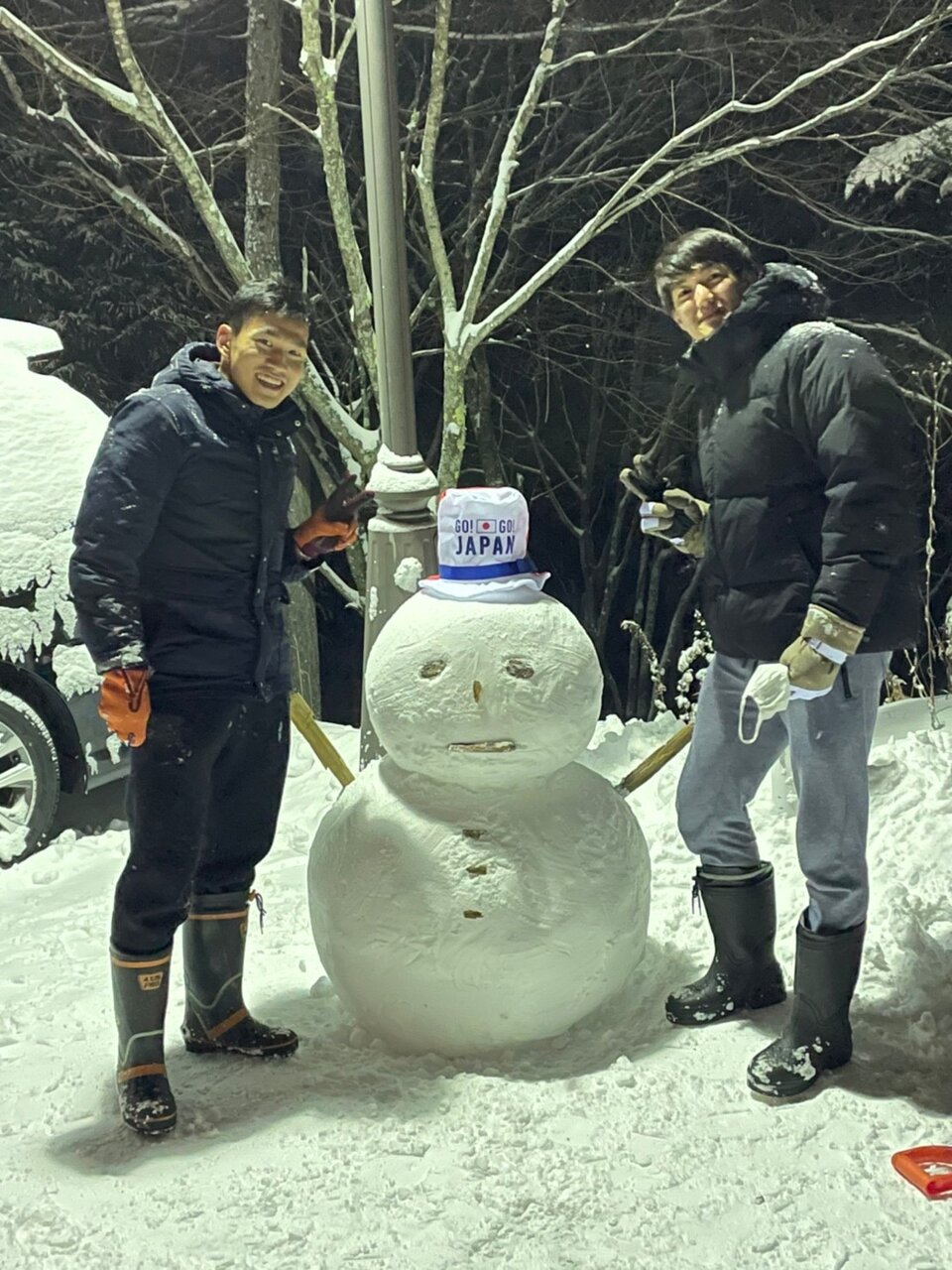 日本選手と松井選手が大きな雪だるまを作りました!