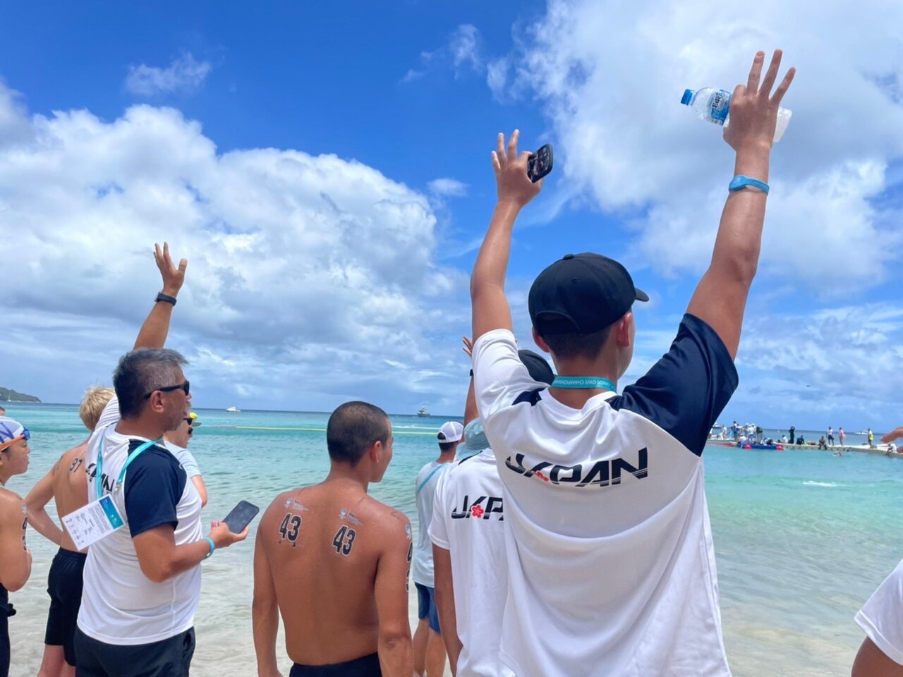 初日は、5kmが行われ、水温は19.8度。ウェットスーツ着用可能のレースとなりました(着用しなくても良い)。
