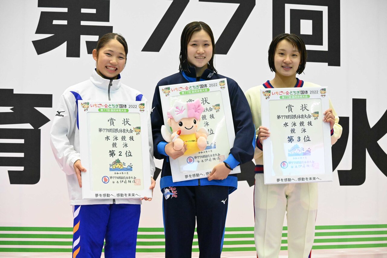 また、女子は森山選手が1周目から独泳状態で2位以降を大きく離すと、男子選手にも追いつくなど果敢にレースを展開し、2位と1分50秒の差をつけて優勝!