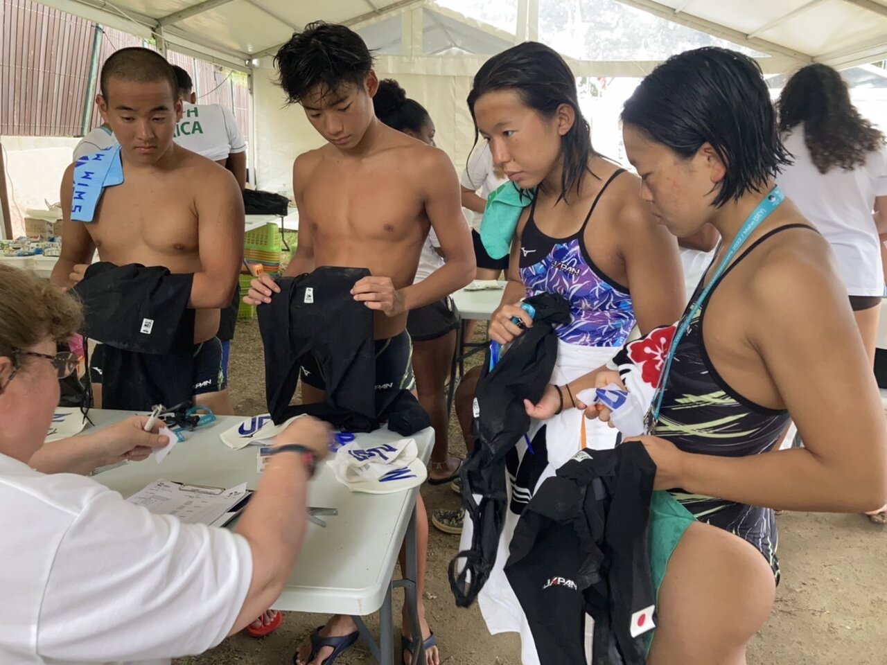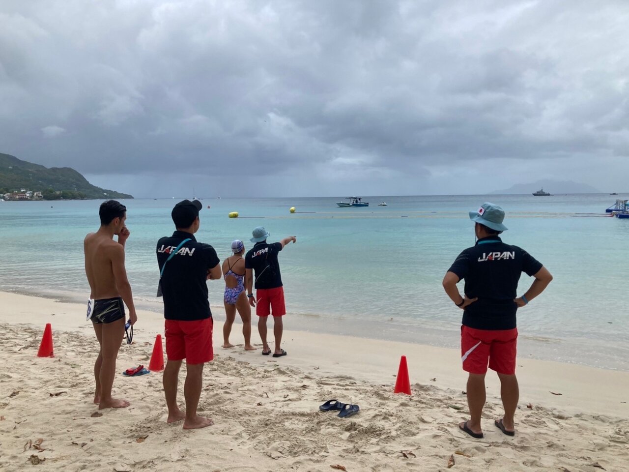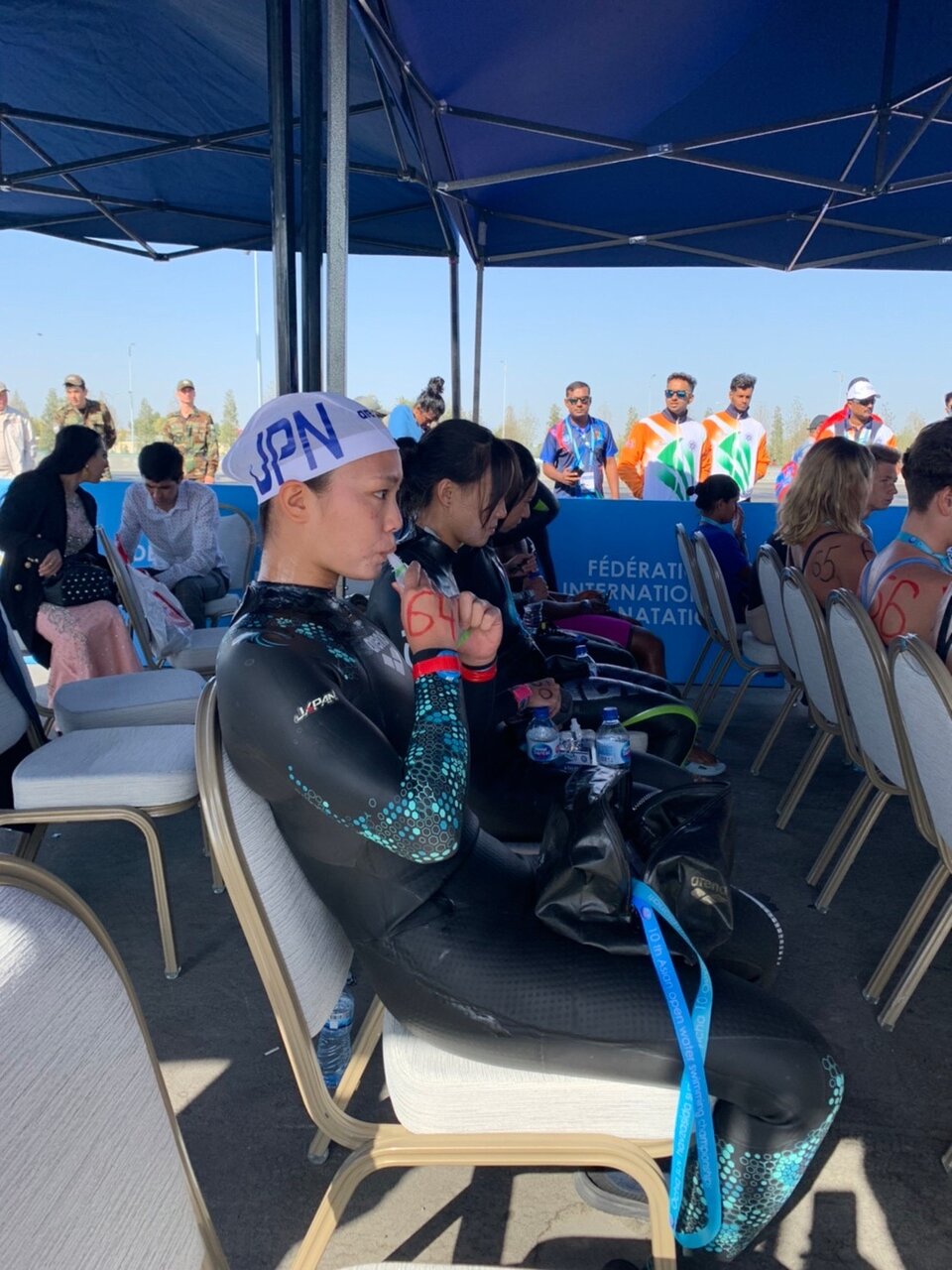 南出・森山選手はウェットスーツを着用、野中選手は水着でレースに臨みました。