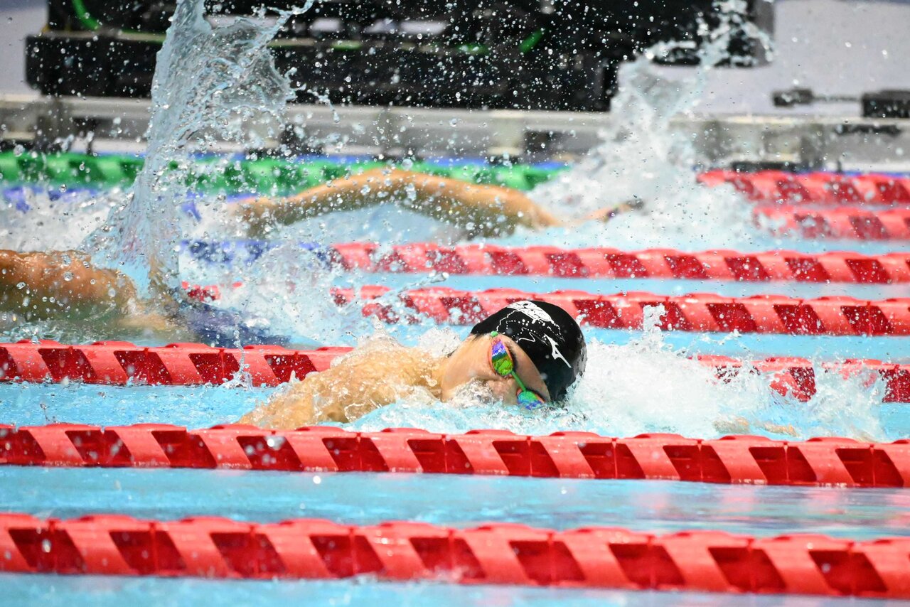 レースは1.65km×3周回のコースで、1周目は野中選手が先頭集団を引っ張り、2周目に入ると南出選手が前に出て独泳。