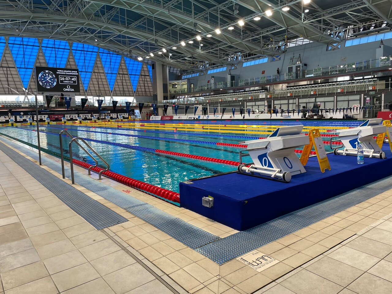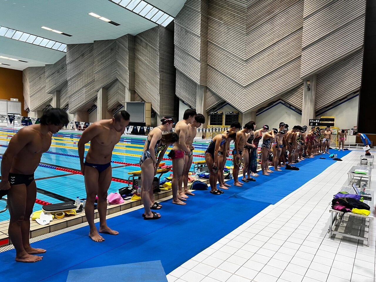 ジュニアでもシニアでも関係なく、練習前後はコーチとプールに一礼。