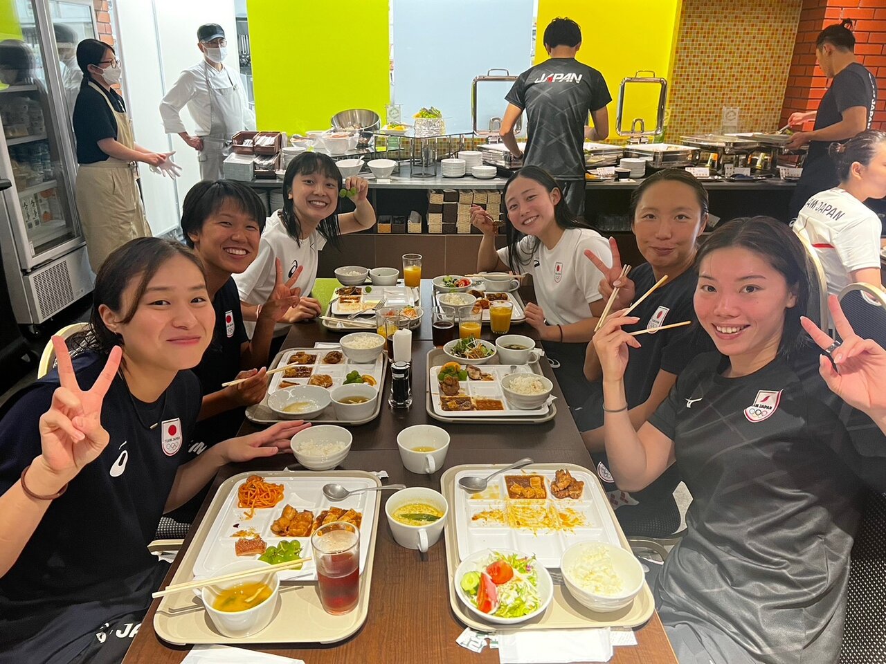 ホテルでの食事も、多くの種類の主食・副菜をご準備いただいており、会話をしながら楽しく食べています!