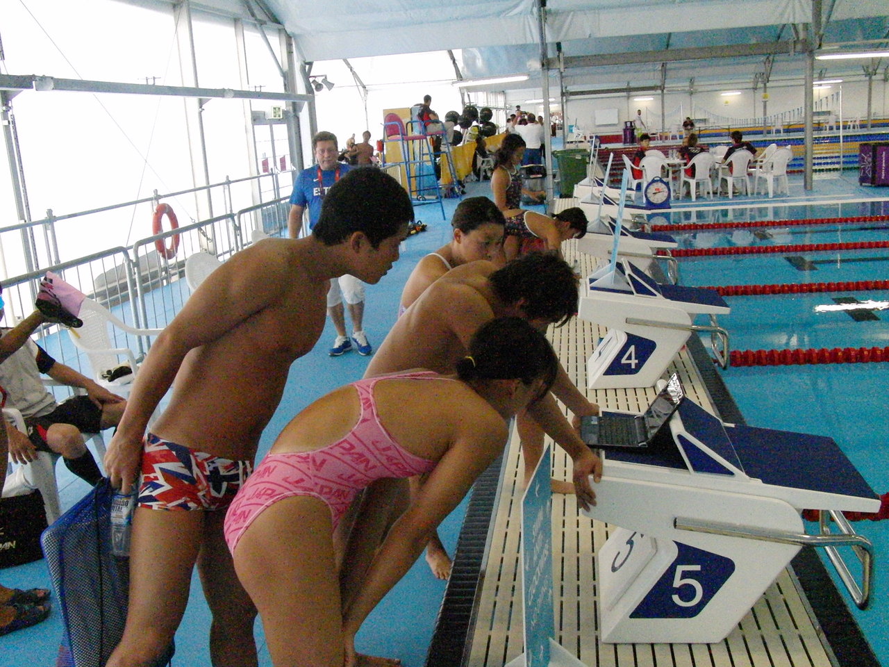 男女ともメドレーリレー以外の選手たちは自分たちのレースを終えました。大会は続いていますが、レースを終えた選手たちは、それぞれ翌々日からしっかり練習を開始しています。50m×10コースが3面あるEaton Manorのプールも大活躍です。