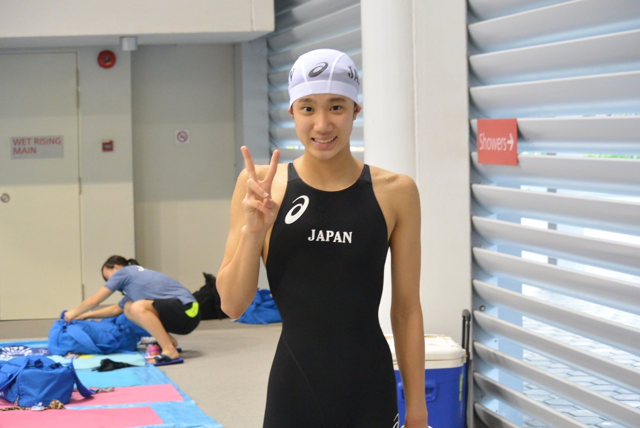 また、この日は女子50m自由形予選にて、難波実夢(MGニッシン)が26秒56で2016年度ナショナル標準記録突破の第1号となりました。(現在中学1年生ですが、4月からの新学年中学2年生の記録を突破。)前日の200m自由形では、あと0.6秒まで迫りましたが突破できず、その悔しさをこの日の50mにぶつけました。